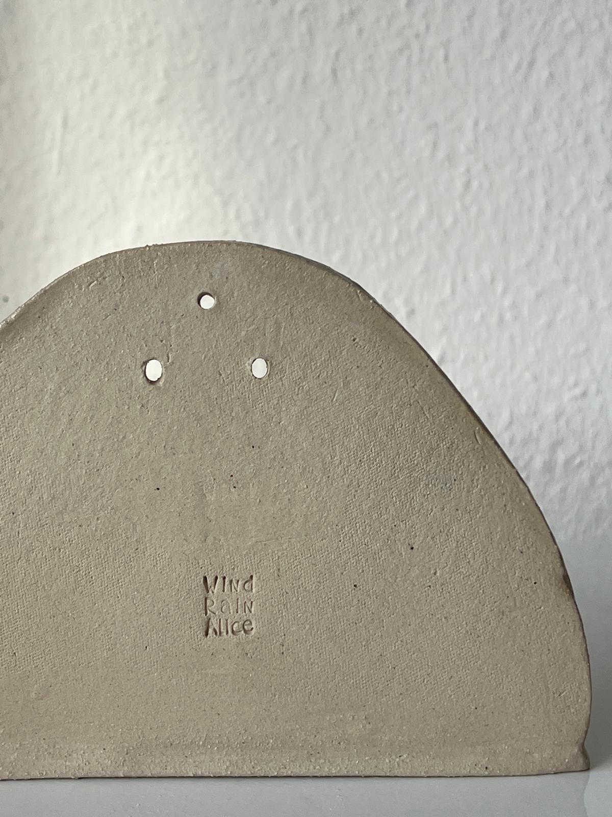 The arched back creates a gentle shelter for the flame, while small openings allow light and warmth to pass through. Each piece is slightly different, with brush marks and lines left visible as part of the making.