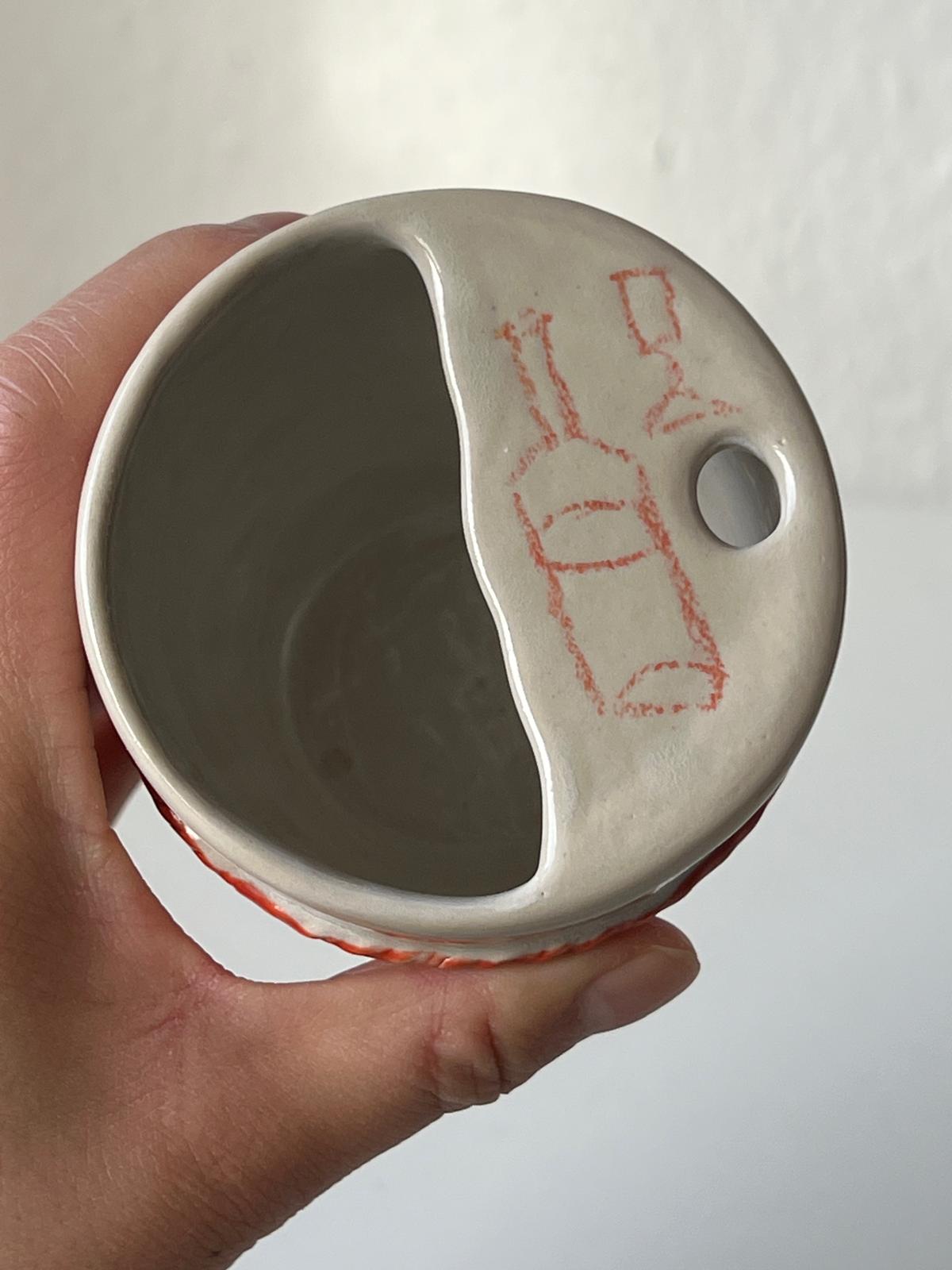The glaze is light in color and varies from piece to piece. The surface is not perfectly even. This comes from the hand-making process. Each tumbler is slightly different.