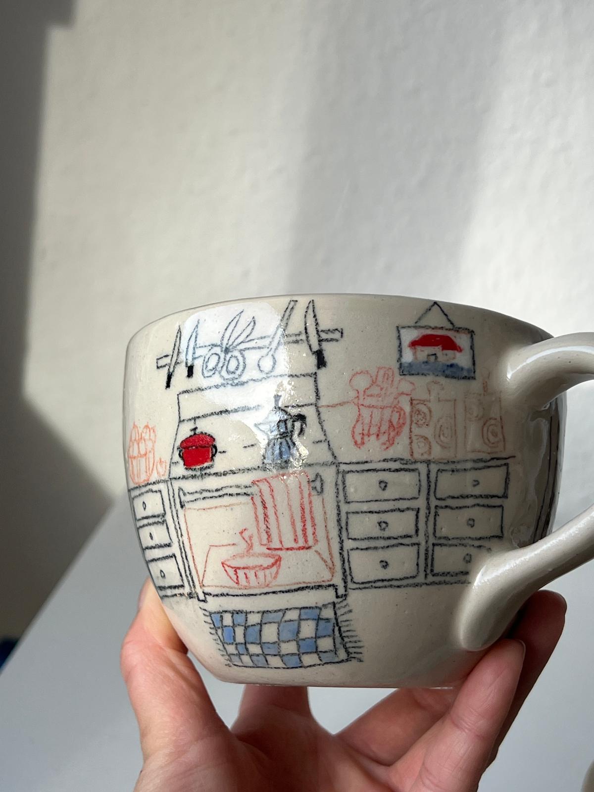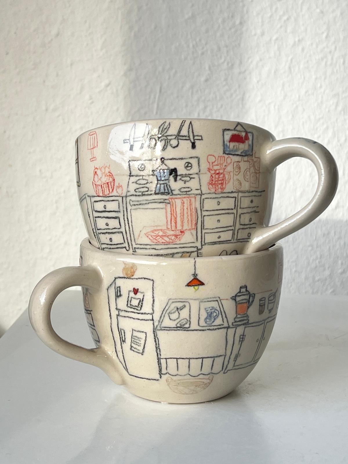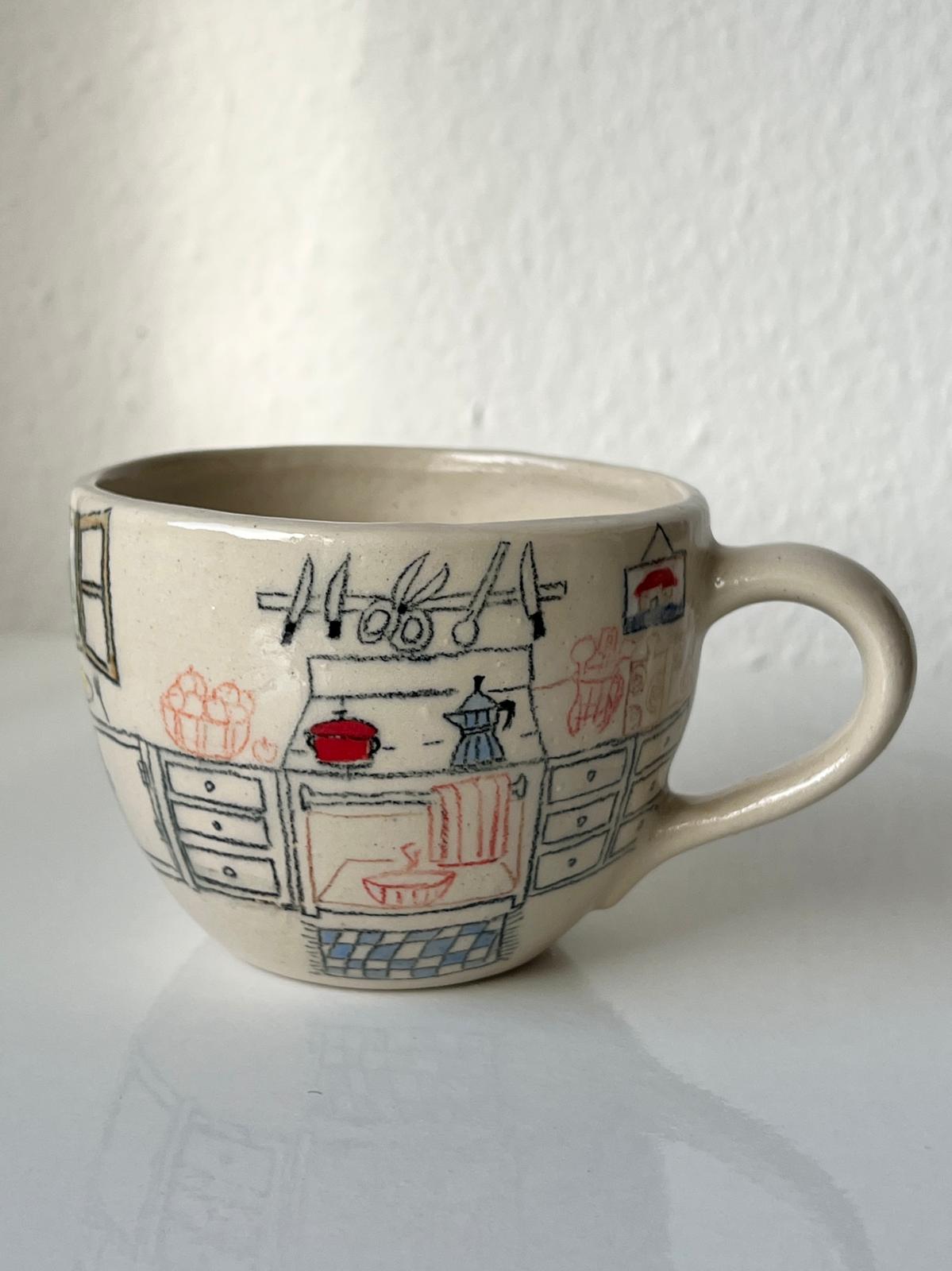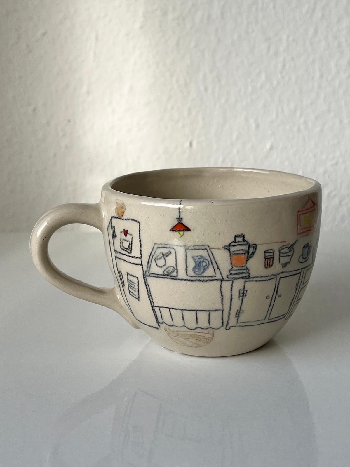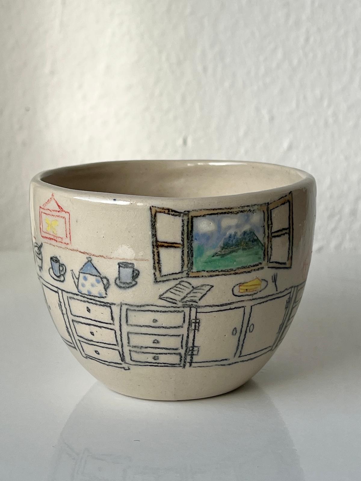 *There are a few small, pimple-like bumps on the surface of the cup, a minor glaze defect that occurred during firing, shown in the last photo*