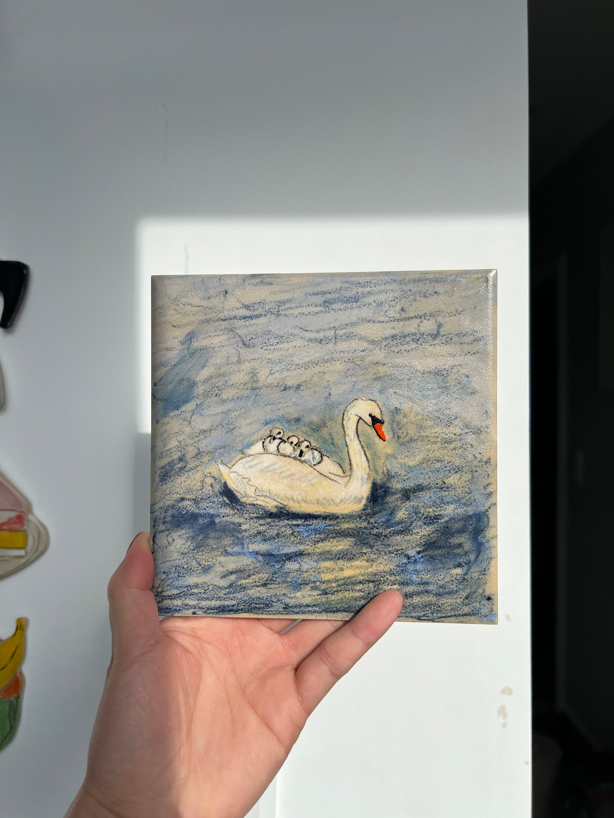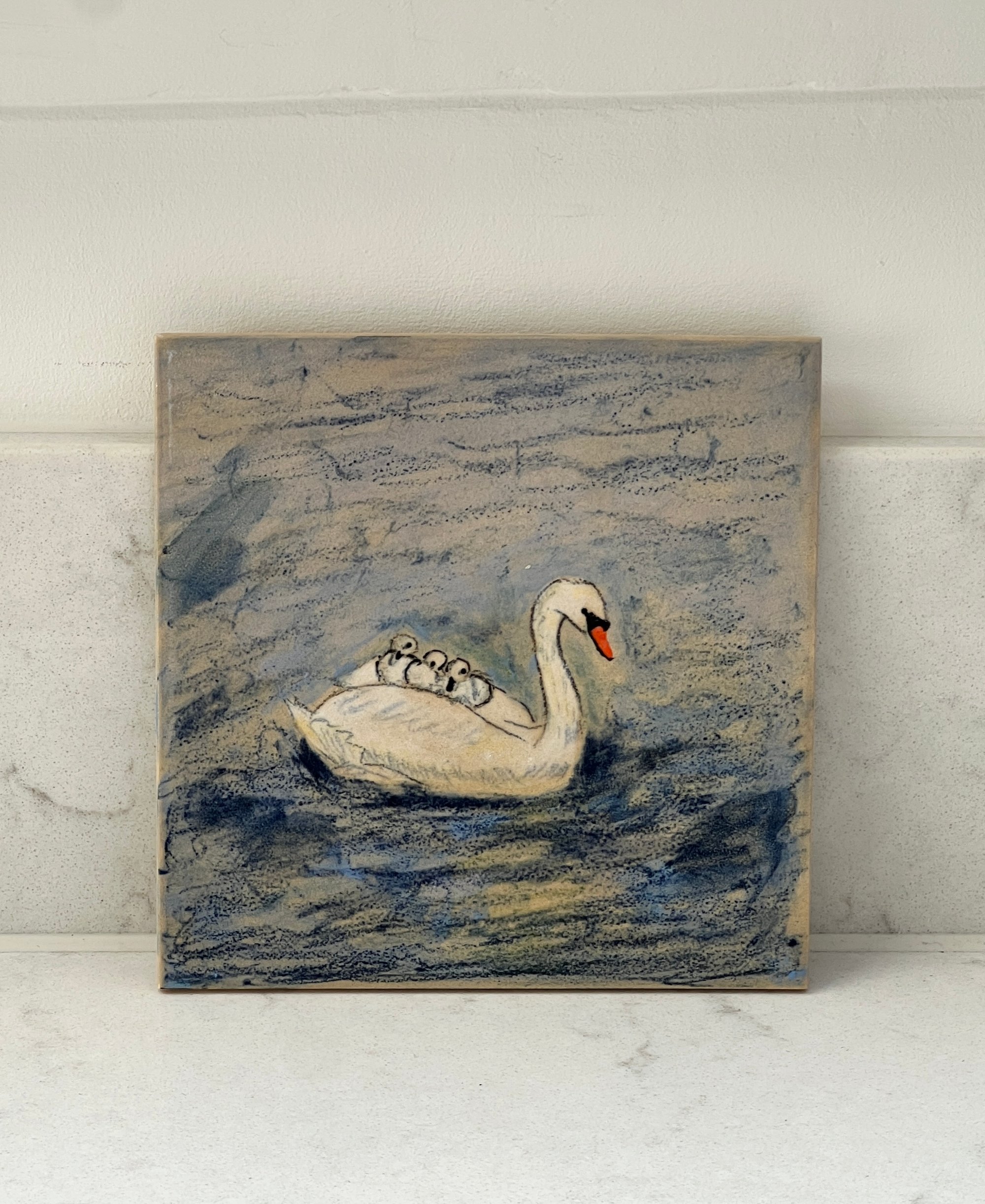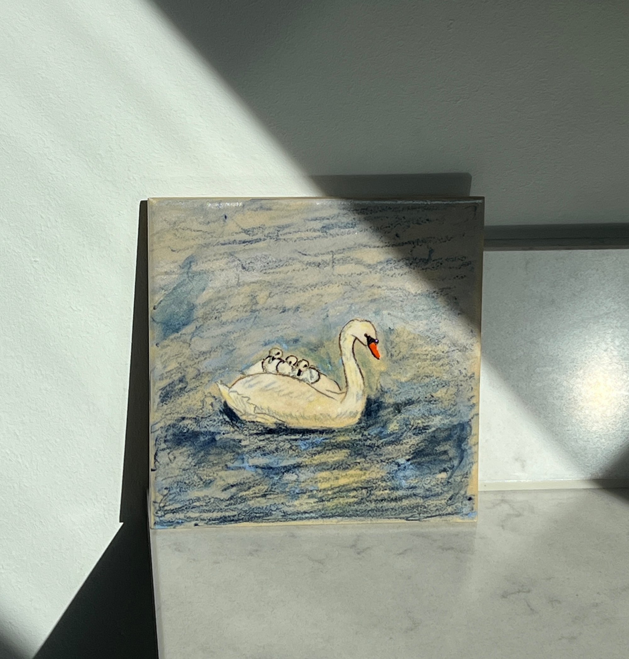 A hand painted ceramic tile designed for decorative purposes — perfect for walls, shelves, or as a standalone piece.